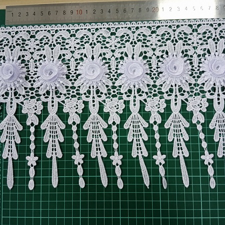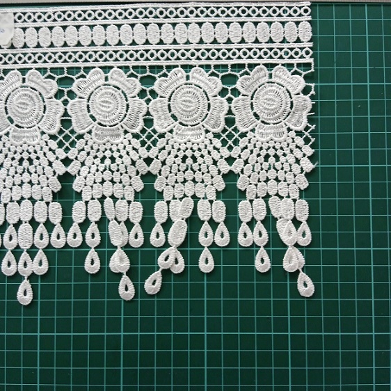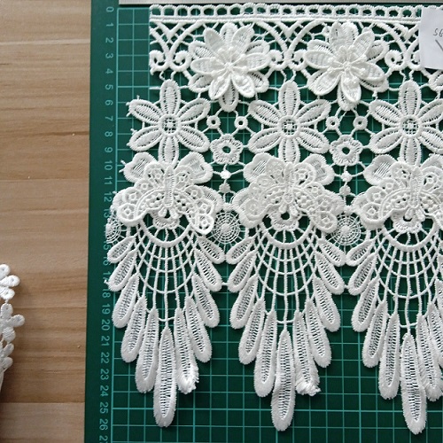 yüksek kaliteli dantel kumaşın en son tasarımlarıdır. Suda eriyen dantel kumaş polyesterden üretilmiş olup, giyim ve ev tekstili ürünlerinde kullanılabilir.