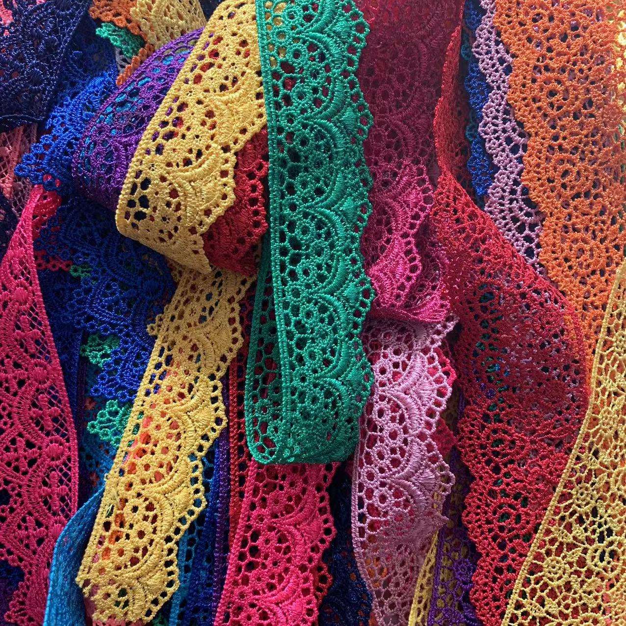 Özel polyester dantel dar nakış dantel trim çok kaliteli polyester malzemeden yapılmış, ince nakış işçiliği ile zengin renklere ve ayarlanabilir genişliğe sahiptir. Kadın giyim, çocuk kıyafetleri ve ev eşyalarının dekorasyonu için uygundur