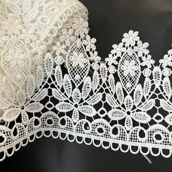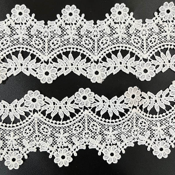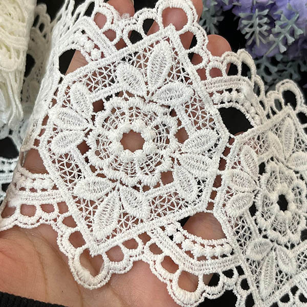 Çok sevimli bir dantel türü daha vardır: Nakışlı polyester dantel süsü. Bunlar genellikle kumaş üzerine dikilir. Kesinlikle sevimli görünüyorlar ve gündelik kıyafetleri ve gece elbiselerini süslemek için mükemmeller.
