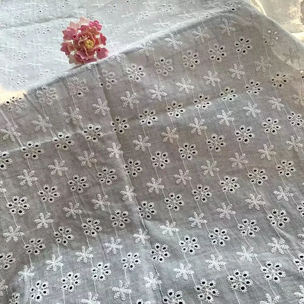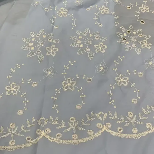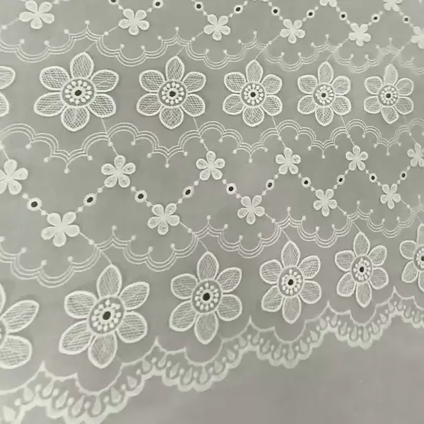 Beyaz pamuklu dantel nakış kuşu kumaş elbise için bu zarif dantel kumaş, hassas nakış ve kuşel kesme işlerine sahiptir, elbiseler, bluzlar ve gelin kıyafetleri için mükemmel nefes alabilen, hafif bir malzeme oluşturur. Karmaşık çiçek desenleri ve taraklı kenarlar romantik, vintage bir cazibe eklerken, doğal pamuk yumuşaklık ve konfor sağlar.